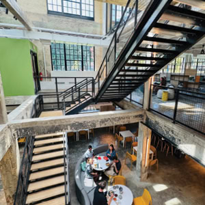 The new Northside Hub is home to our sun-powered offices, as well as community gathering spaces that will open in January. Responding to neighborhood-voiced needs, the vision is to make the Hub a welcoming place for all Northside residents and visitors to learn, grow, play, create, and celebrate together.