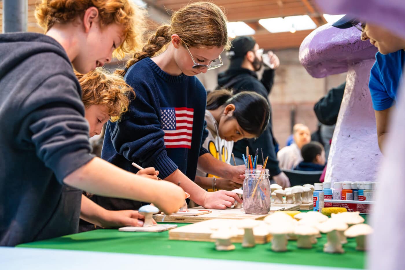 This fall, around 400 people from the neighborhood came together to celebrate the Hub’s arrival at a Community Block Party, which featured delicious local food, farm-fresh produce, DJ beats, lawn games, and nature-inspired art-making.