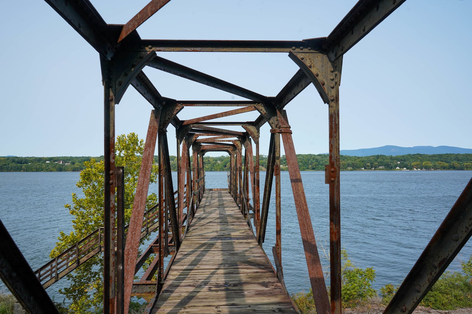 In addition to furnishing new connections to the river, the bridges offer glimpses into the region’s past and the charmed lives of previous users. As Anzevino says, “Every one of them has an interesting story.” In Hyde Park, a steel truss bridge leads to Crum Elbow Point, where the Half Moon anchored during Henry Hudson’s 1609 voyage of discovery and the crew made friendly contact with Indigenous people of the Wappinger tribe. Later, Franklin and Eleanor Roosevelt also enjoyed spending time there.
