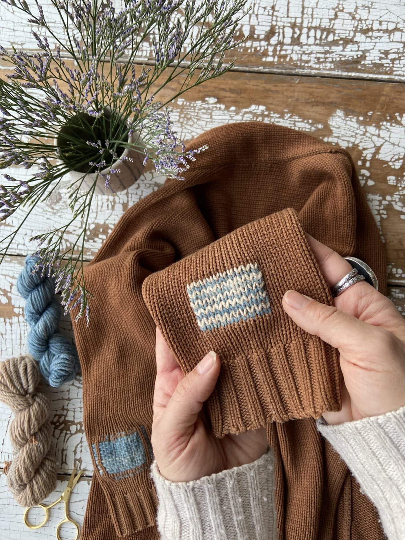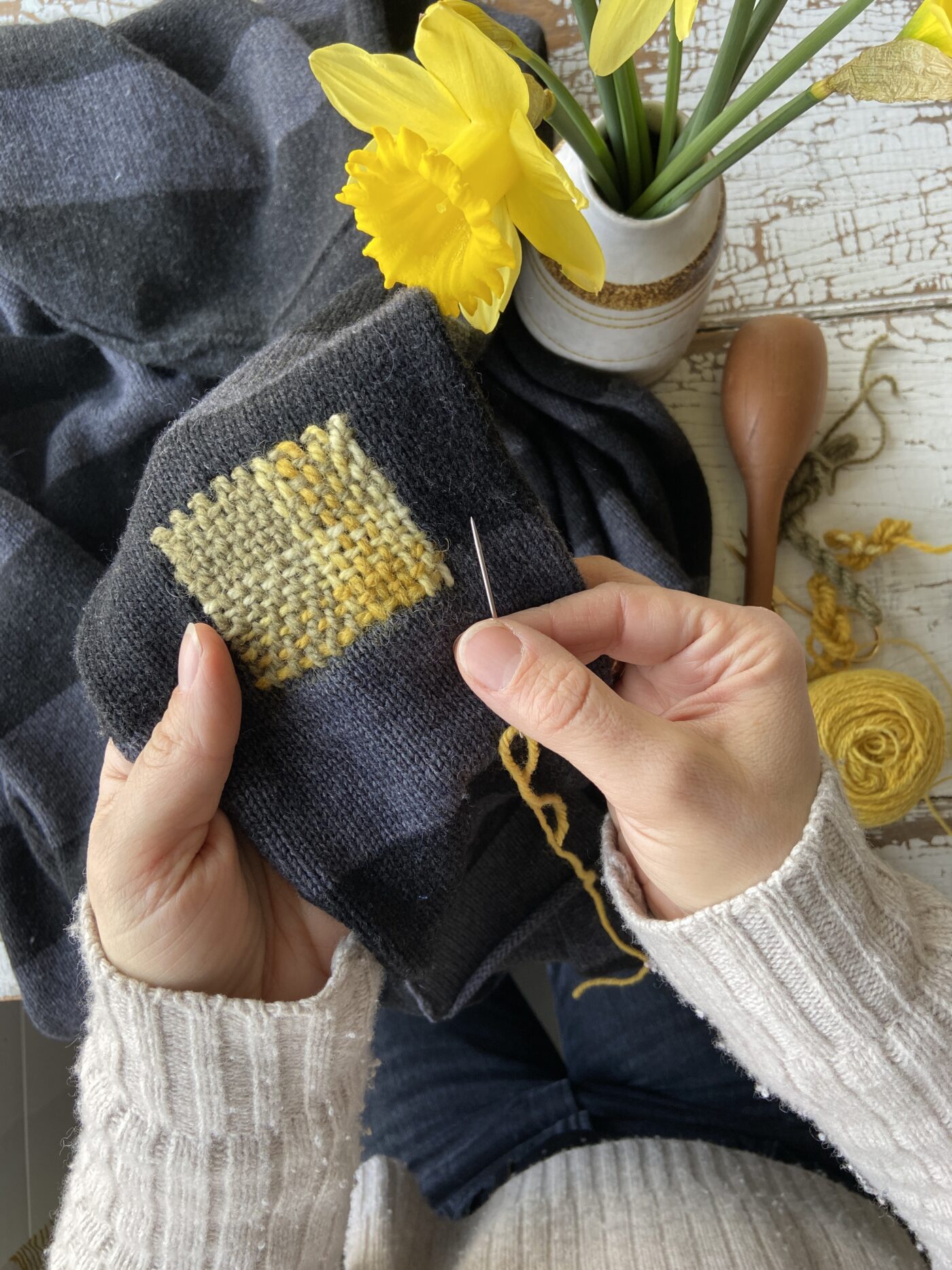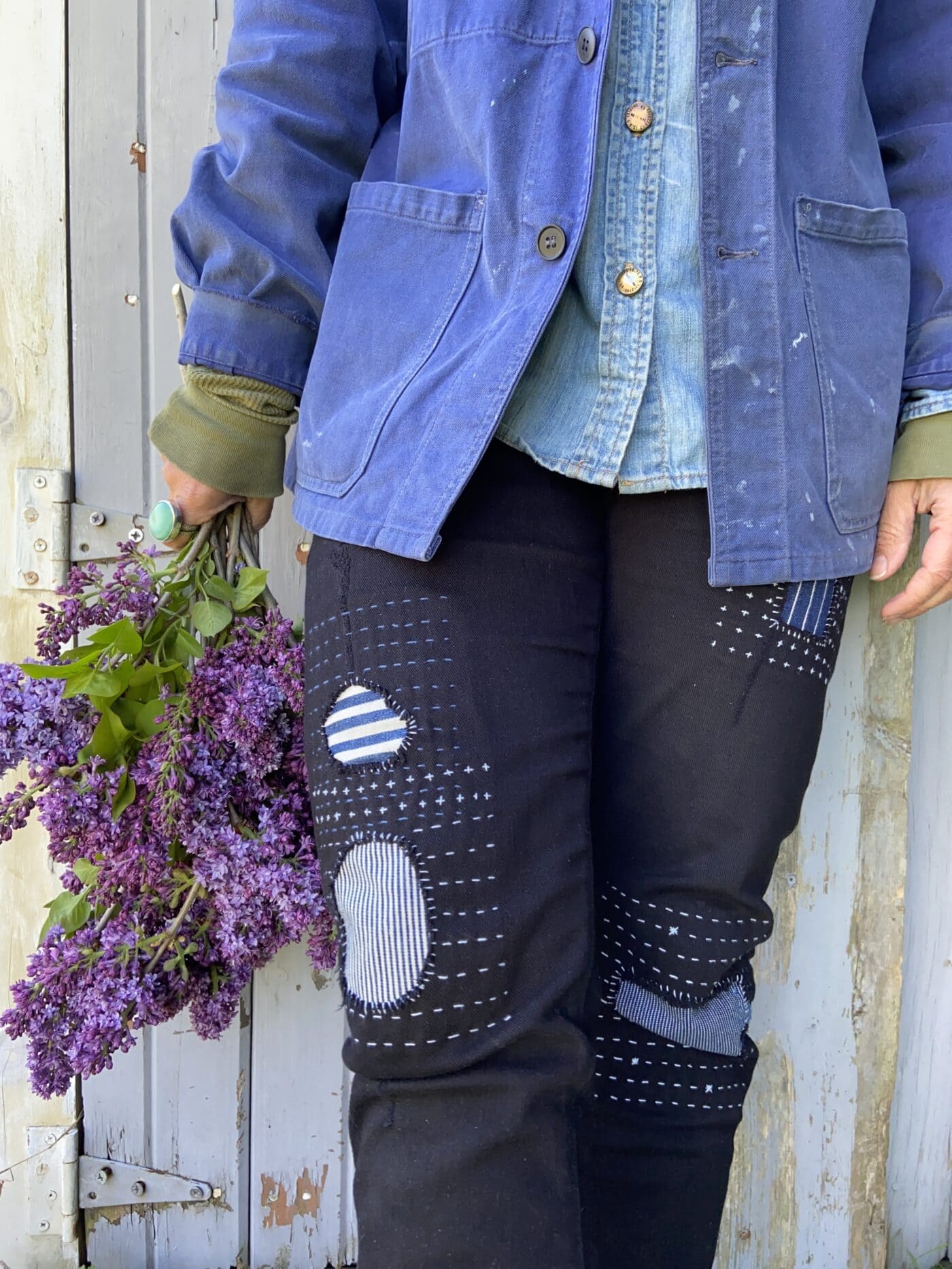 “If mends are visible, people see them, notice them, and ask about them. You can feel great about what you’ve created and also know you’re inspiring others,” says Cal Patch, who makes all of her own clothes and teaches visible mending and sewing in the Hudson Valley and online. “Mending is an ethos,” she adds. “It’s my religion.”