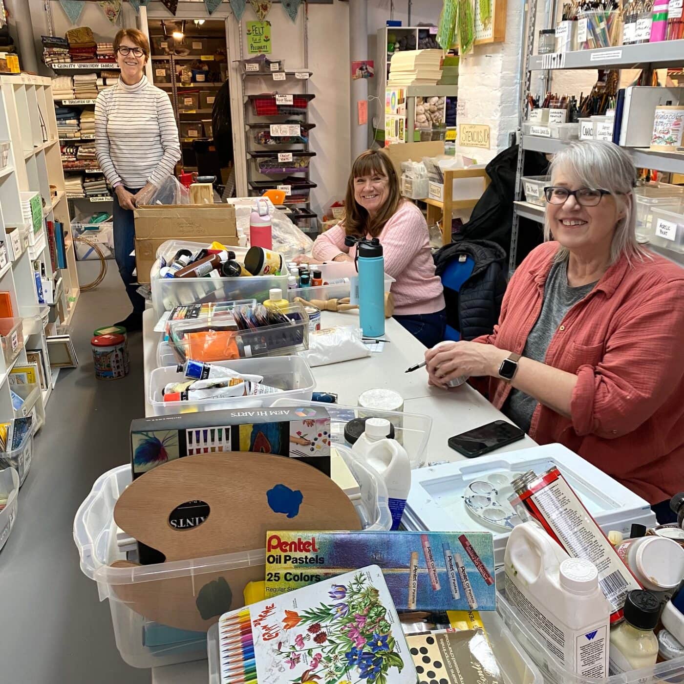 Abstract artist Elizabeth Castagna, a patron of Second Wave Supplies, purchases products for her own work and for classes she teaches. “Their supplies are in such great shape — some are new or practically new,” Castagna says. “Usually for me, a trip to a traditional art supply store is preceded by wondering how much supplies will cost and adjusting my list accordingly, so there’s a freedom and excitement in knowing I don’t have to go through that assessment before buying art supplies. I love experimenting with new materials and I’m freer to do that because the investment is so much less. And vice versa — when I donate supplies, it feels more like an offering than getting rid of something.”