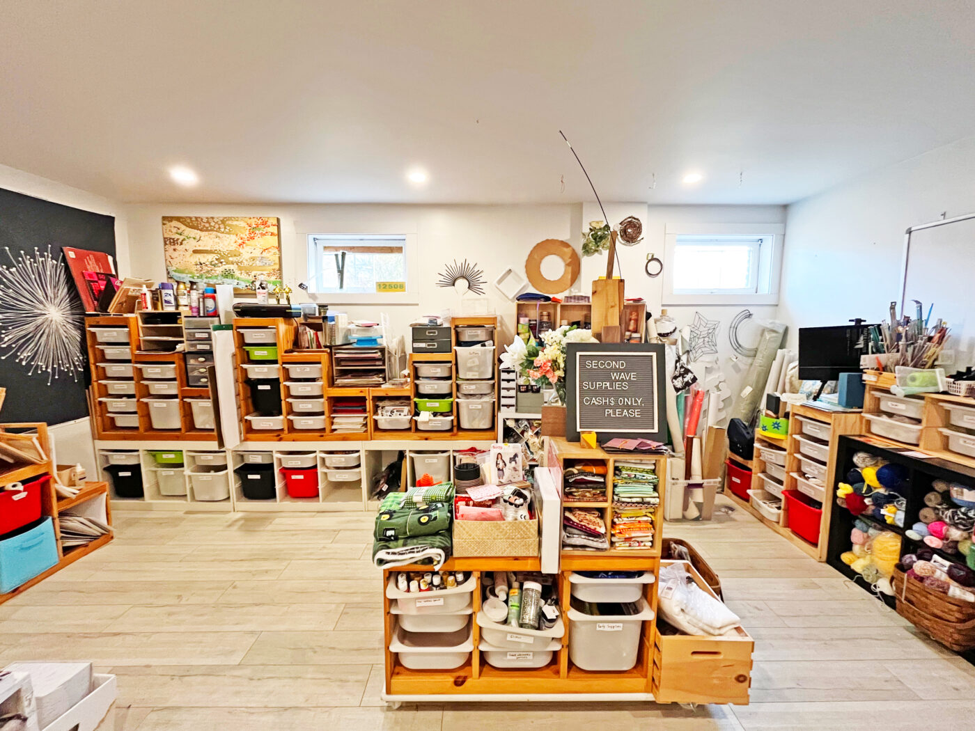 Korein’s shop also inspired another sustainably minded entrepreneur, Margo Kingon, who owns Second Wave Supplies in Beacon. Her intimate space opened in November 2024 and sells donated paints, paper, kids’ crafts, textiles, office supplies, and “anything you can get creative with,” she says. “My husband is from Portland, and when we visit, I love going to this shop called SCRAP PDX, which is a warehouse-type space with barrels of random things — zippers, spools, index cards — and I’ve always thought that’s something I’d like to do.” When Retake Remake opened, she realized there was more than one way to go about it. She spoke with Korein, who encouraged her to open her own space.