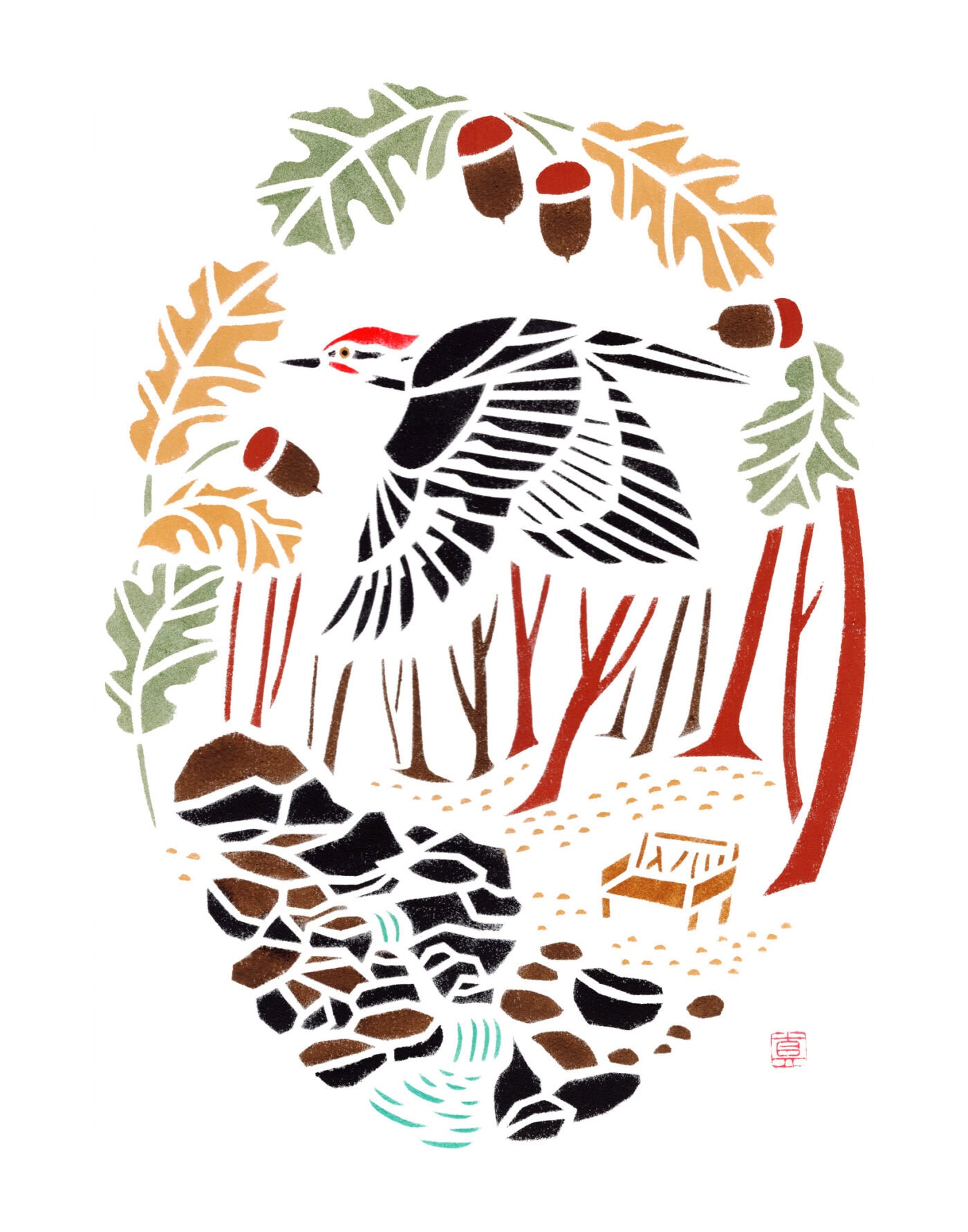 Unfortunately, this period also brought rising rents, and so Fujino had to relocate again. This brought her to the Hudson Valley where inspiration continues to flow, but now from more natural surroundings. This can be seen in her ongoing Birds of the Hudson Valley collection of handmade stencil paintings.